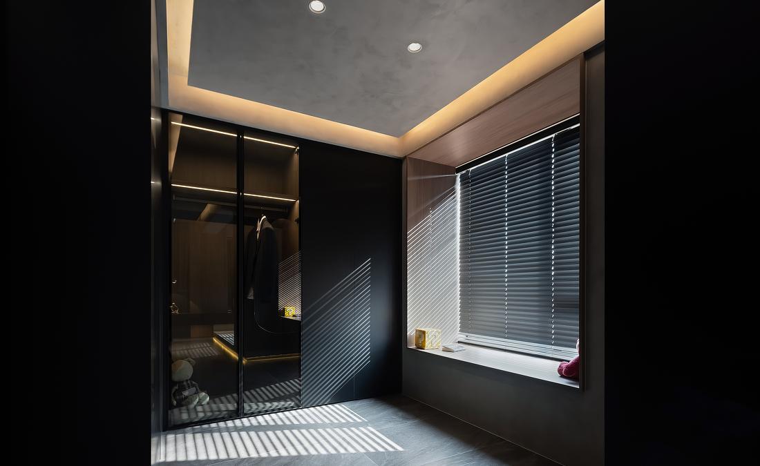 In order to maintain transparency between the dressing room and the master bedroom, we replaced the solid wall with three sets of rotatable glass partitions. Under sunlight, the screens at different angles will present different light and shadow changes.
